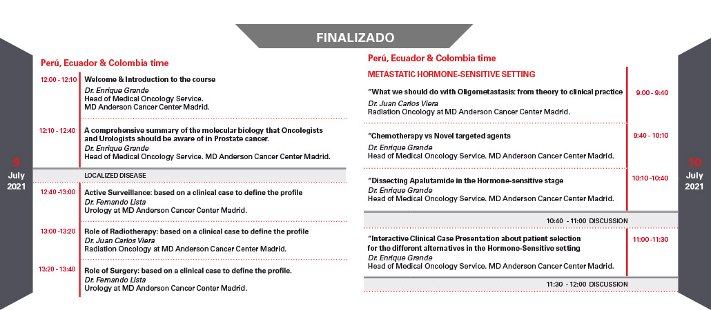 Lugar: Sala Videoconferencias – Hospital MD Anderson Cancer Center Madrid – Hospiten